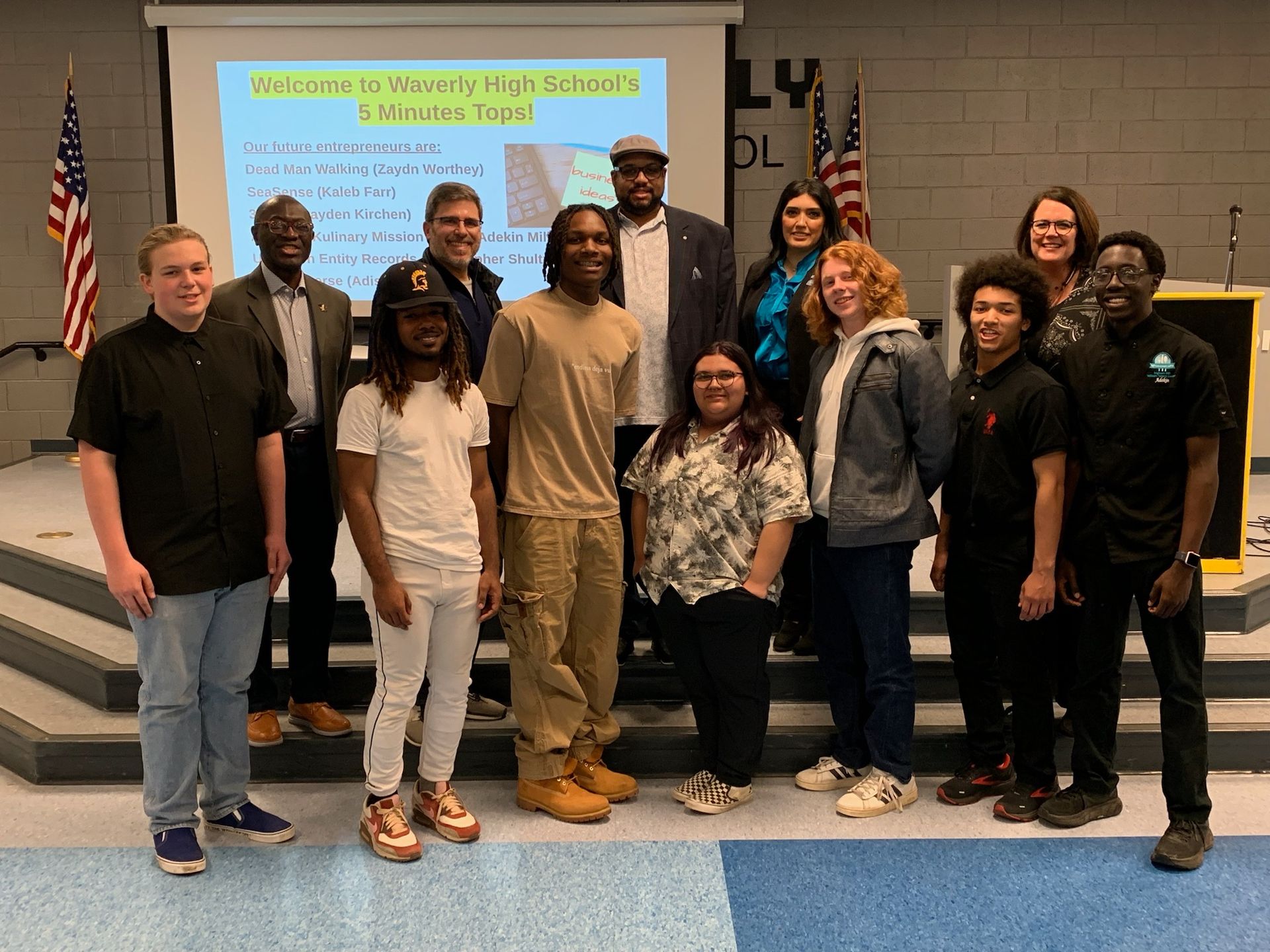 5 Minutes Tops is a Shark Tank-style pitch competition for high school students at Waverly High School. There are also chances for them to compete regionally with their business idea. Students pitch their business start-up concept or their actual business in 5 minutes or less for a chance to win real money. Students pitch their ideas to a panel of community business leaders and entrepreneurs. The students have an opportunity to have help preparing their pitch with Mr. Konietzko starting in the early spring of each year. Any interested students should contact Mr. Konietzko at Waverly High School.